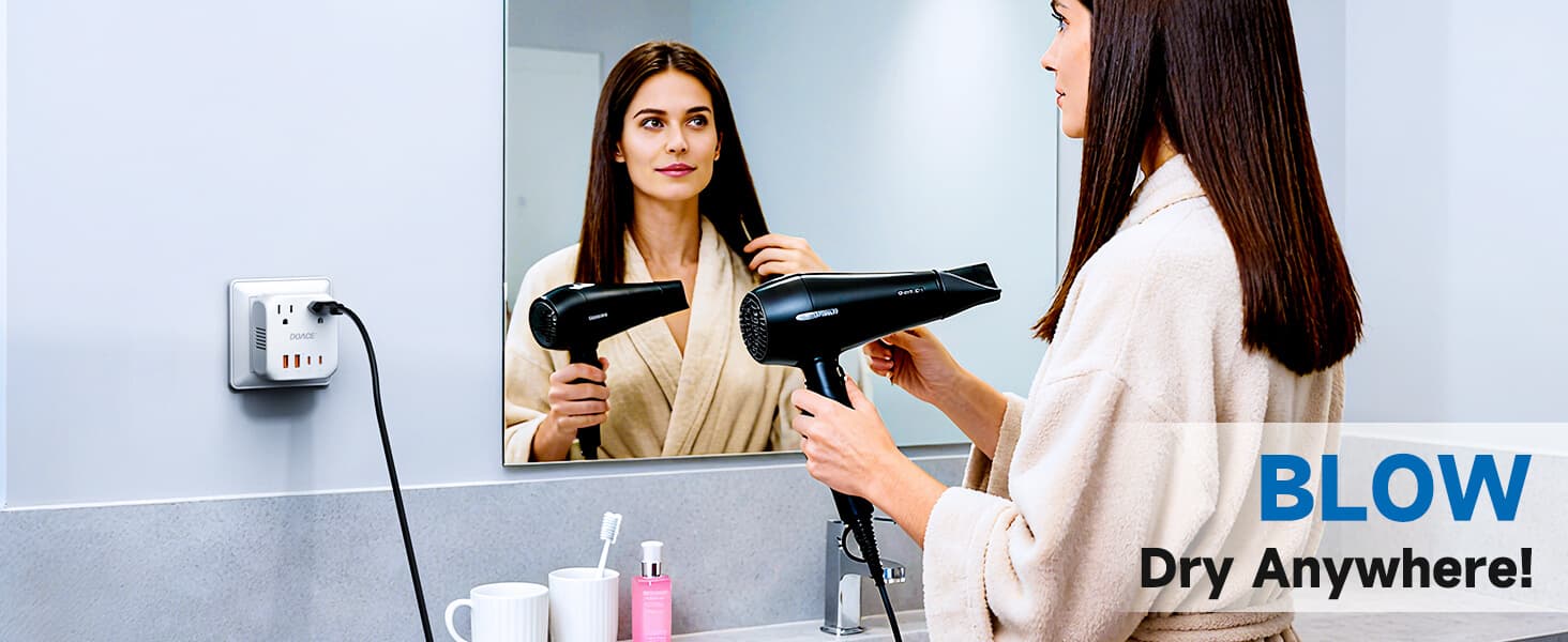 Warning: Do not exceed 2000W! This converter is designed for devices with a maximum power consumption of 2000 watts or less. Not for Dyson hair tools. Exceeding the power limit may cause serious overloading, resulting in product damage, malfunction, or potential safety risks such as overheating or fire. Always verify your device's power requirements before use.