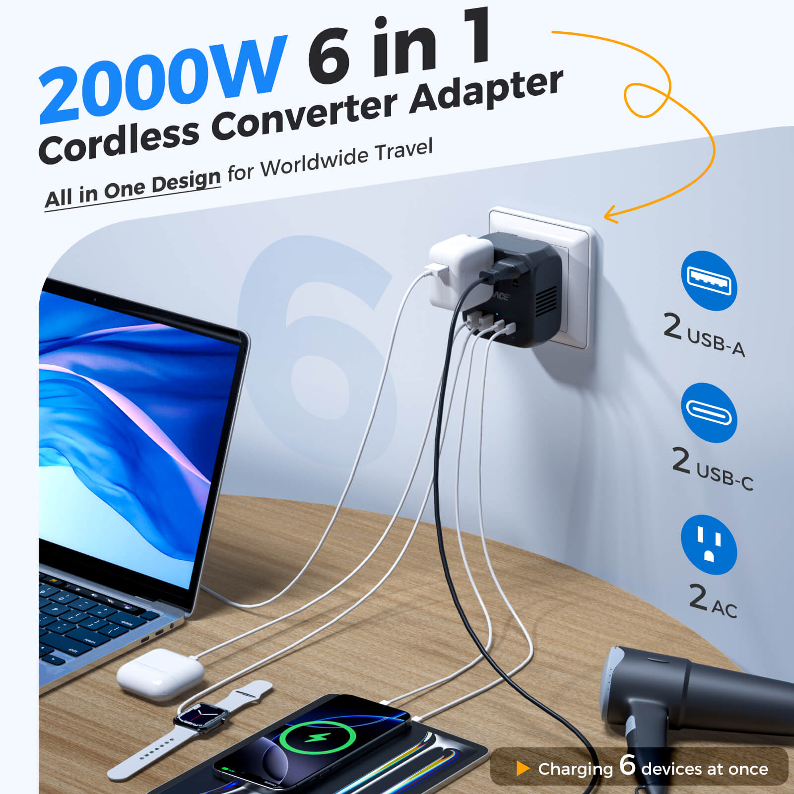 DOACE C15 2000W Voltage Converter with Worldwide Plug Adapters & Fast Charging Ports