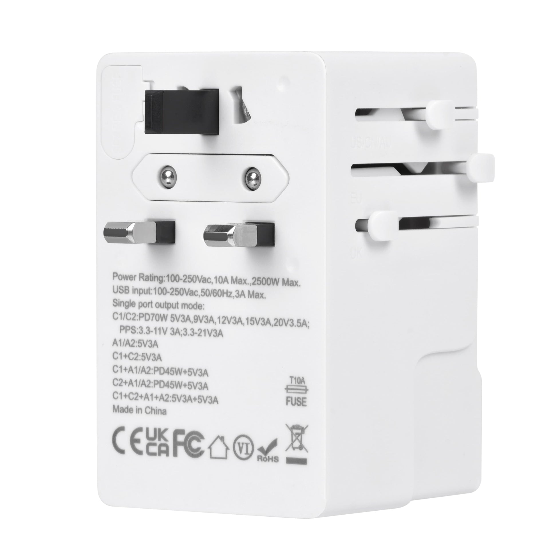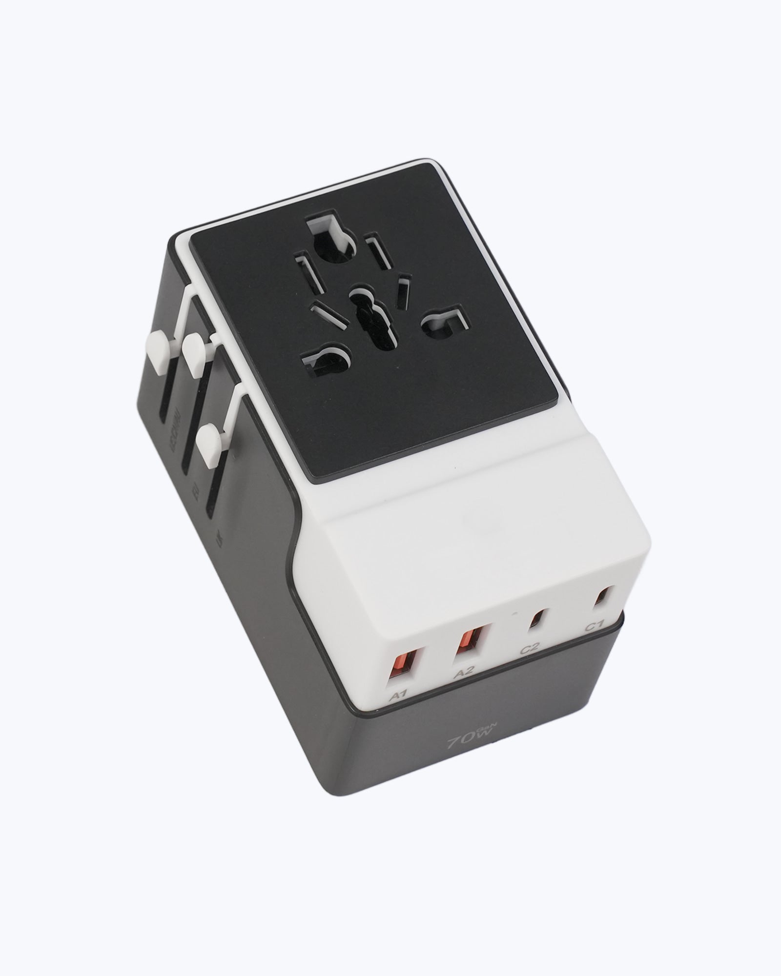 Next-gen GaN-powered adapter providing up to 70W fast charging in a compact and travel-ready form. Optimized for charging multiple devices simultaneously during international trips.