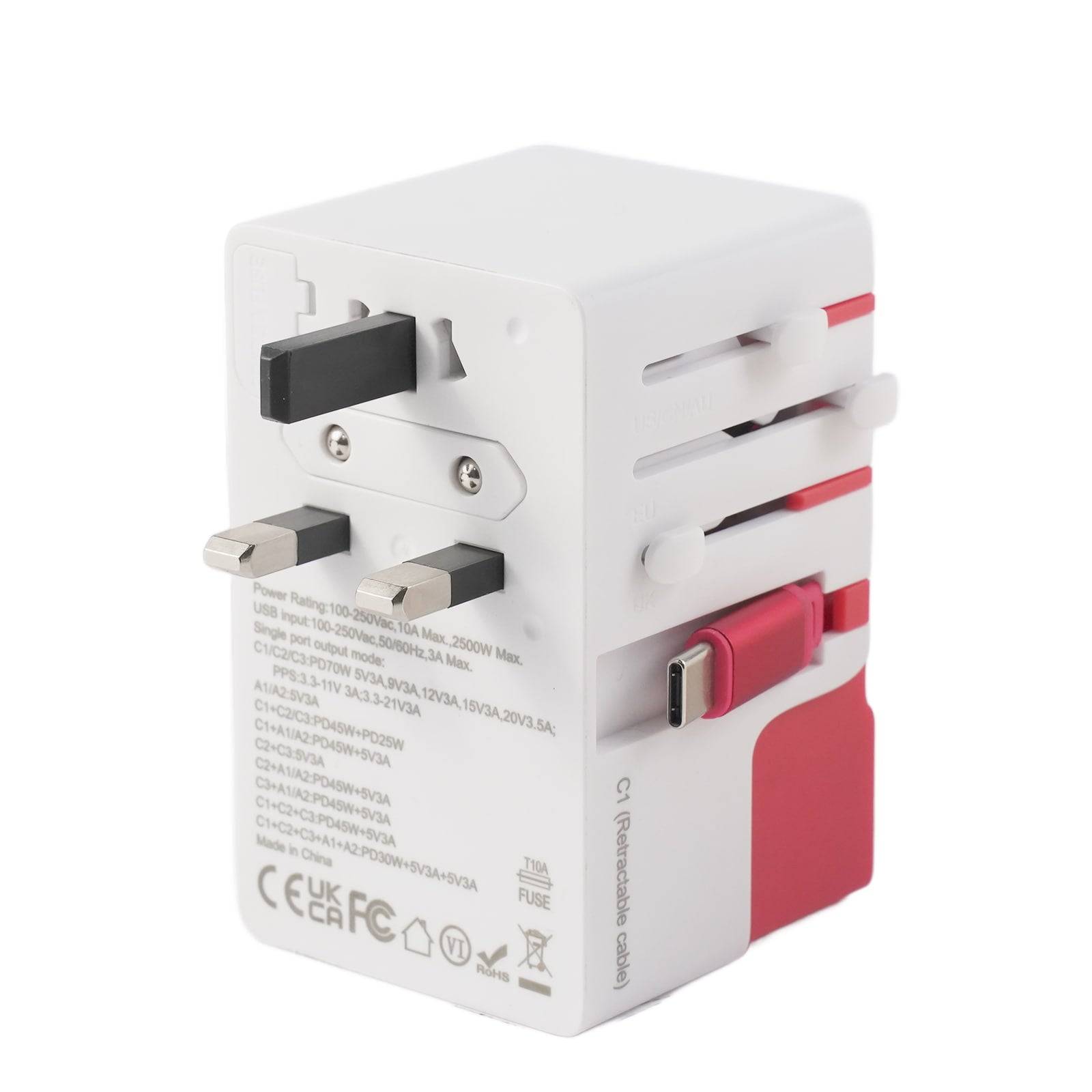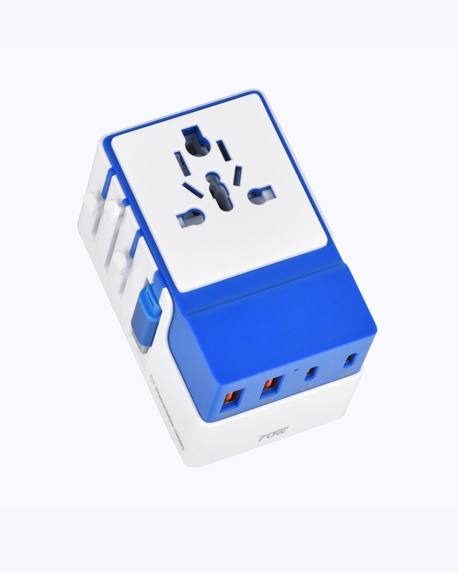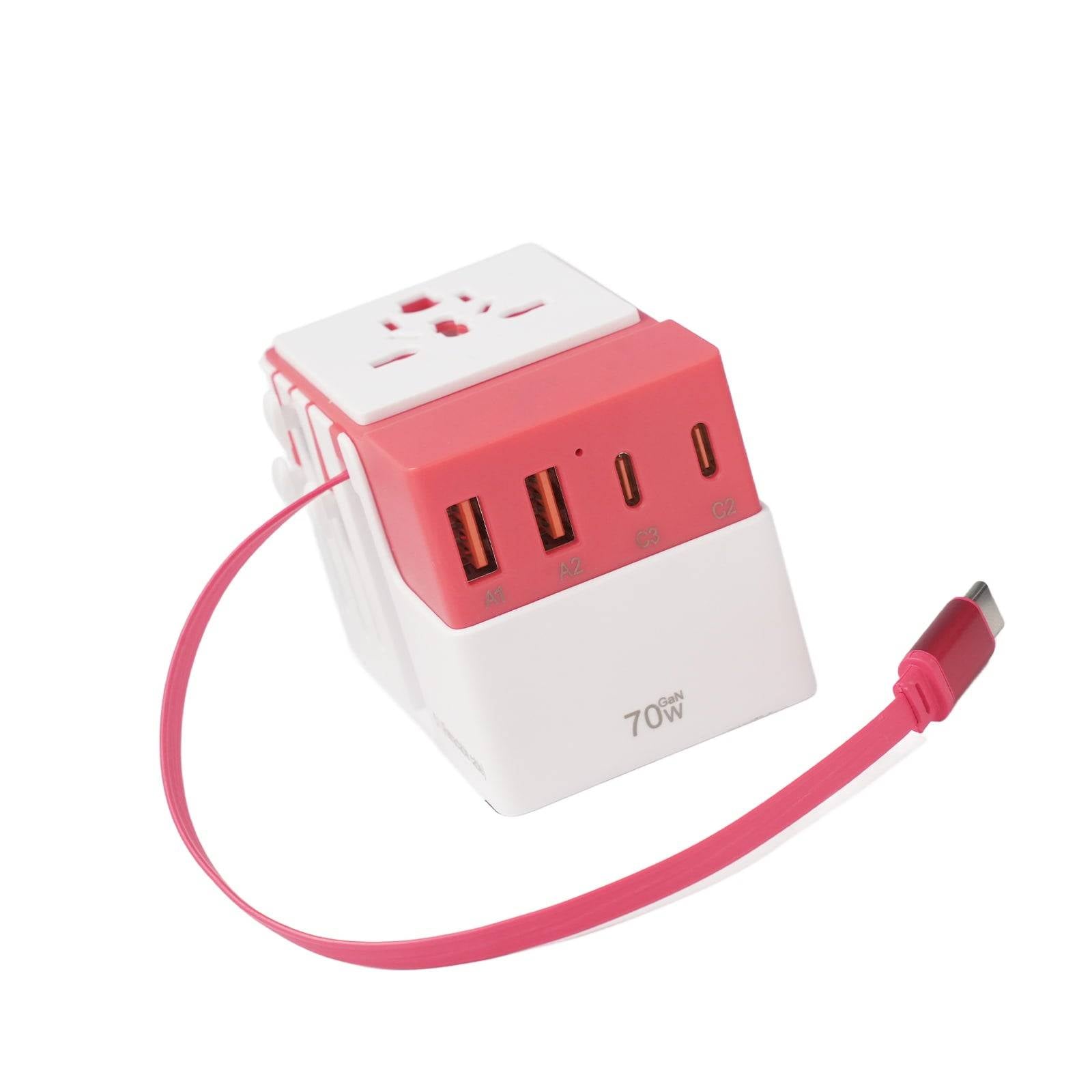 DOACE FC-T70C-1 | 3USB-C+2USB-A 70W GaN PD | QC3.0 Travel Adapter with Retractable USB-C Cable