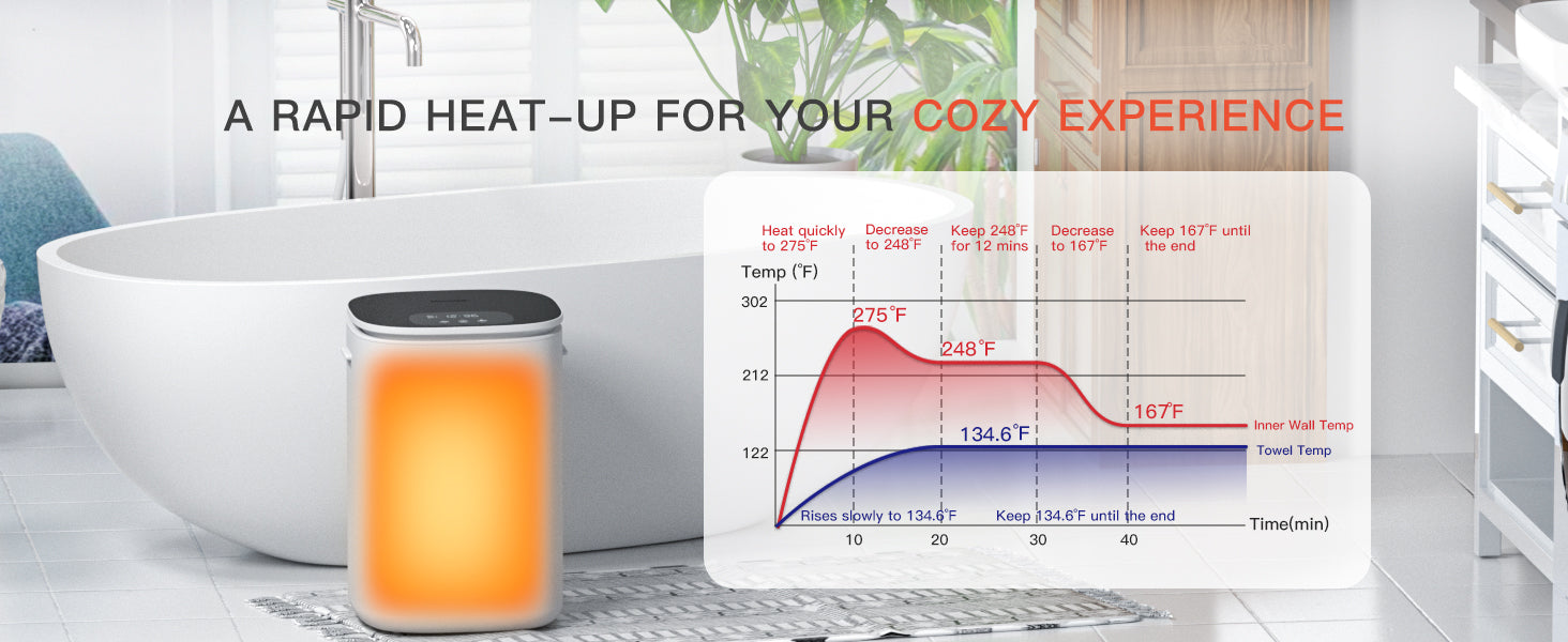 Transform your bathroom into a luxurious spa-like oasis with the DOACE Towel Warmer. Rapidly heating up in just 1 minute and reaching high temperatures in just 6 minutes, this ultra-large 23L capacity bucket accommodates up to two oversized bath towels, bathrobes, and even blankets. Choose the fragrance you like with the built-in disc holder, and effortlessly operate the digital LED display and sensitive touch panel. Its stylish design and hidden charger cable make it a perfect accessory for any home, pool house, shower, salon, hotel, spa, massage, baby care, elders, and more. Make the perfect gift for any occasion with the ultimate comfort of the DOACE Towel Warmer. Experience the daily surprise of a warm, fluffy towel after every bath.